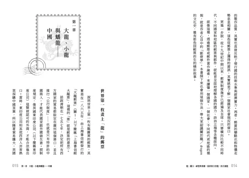 一枚郵票,記錄的不只是郵資, 還有一段權力、一種神格、一種對水的崇敬與畏懼。 從大清海關到明治日本、從英領香港到基督教世界, 龍的形象如何被各國郵票捕捉、轉譯與再定義? 這是一本重新解讀「龍」的權威與幻象的知識圖譜, 從郵票出發,展開一段跨越疆界的文化旅程。 每一枚郵票,往往反映了發行國的政治立場與歷史觀。自十九世紀以來,郵票制度逐步擴展到全球,戰爭、慶典與重大歷史事件被轉化為圖像,隨郵件流通,也成為國家對外傳遞形象的方式。