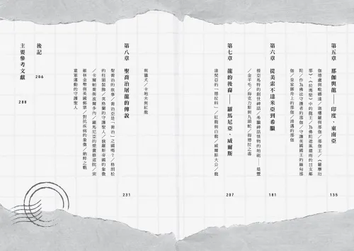 前言 第一章 中國篇──大龍、小龍與蟠龍 ․ 世界上第一枚畫上「龍」的郵票 ․ 中國國家郵政與海關大龍票 ․ 台灣的龍馬票 ․ 大清國家郵政與日本製蟠龍郵票 第二章 日本最初的郵票為什麼畫上了龍? ․ 世界上最早的郵票,是女王的肖像 ․ 圍繞龍郵票誕生的「都市傳說」 ․ 涉澤榮一帶回來的法國郵票 ․ 在趕工中誕生的龍郵票 ․ 掌管水與天候的龍神 ․ 龍郵票的終章 第三章 青龍、飛龍與南北對立──朝鮮半島 ․ 水神與龍王 ․ 江西大墓的青龍 ․ 高麗與龍 第四章 琉球的龍柱 ․ 首里城的大龍柱 ․ 琉球郵票中的龍柱與龍頭 ․ 紅型的龍 ․ 雲龍印籠 第五章 那伽與龍──印度、東南亞 ● 伽德盧與毗娜達 ● 迦樓羅與那伽 ● 那伽王 ● 《羅摩衍那》/《拉瑪堅》中的龍王 ● 為佛陀遮風避雨的目支鄰陀 ● 作為佛法守護者的那伽 ● 守護英國國王的緬甸那伽 ● 皇家御舟上的那伽 ● 清邁的那伽 第六章 從美索不達米亞到希臘 ● 提亞馬特的創世神話 ● 希臘神話怪物的始祖——堤豐 ● 金羊毛 ● 海克力斯與九頭蛇 ● 海德拉之毒 第七章 龍的後裔──羅馬尼亞、威爾斯 ● 達契亞的「德拉科」 ● 紅龍與白龍 ● 威爾斯大公 ● 龍與獵犬 ● 卡地夫與紅龍 第八章 聖喬治屠龍的傳說 ● 聖喬治的故事 ● 喬治亞是「喬治」之國嗎? ● 格朗松的柱頭裝飾 ● 英格蘭的守護聖人 ● 俄羅斯帝國的象徵 ● 卡爾帕喬與波爾多內 ● 羅馬尼亞的壁畫修道院 ● 索維林金幣與英國郵票 ● 對抗疾病的象徵 ● 納粹之戰 ● 童軍運動的守護聖人 後記 主要參考文獻 |