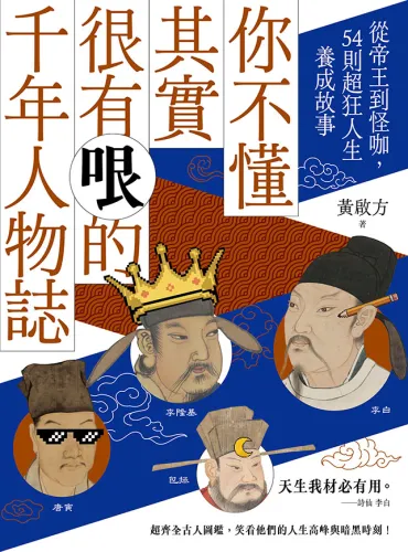 【內容重點】 你以為歷史人物只有正經八百的帝王將相?其實古人比你想像的還「忙」,不只忙著治國打仗,也忙著社交、創作、談戀愛、追夢想。本書精選五十四位中國歷代代表人物,重新走進他們的宇宙,不同於教科書嚴肅的敘述,而是以「哏」出發,看他們怎麼做人、怎麼面對挫折、怎麼在歷史裡留下痕跡。有的令人佩服、有的令人唏噓,但每一位都讓人想說:「這人我好像在哪看過!」 本書作者引領我們穿梭數千年人物風景,融合歷史、文化與心理觀察,既有豐富知識,又有故事感。每章像一則則人物小劇場在眼前上演,用現代視角重新體會古人那些超展開的人生命運與關鍵時刻所做的抉擇……,讓你發現原來歷史不只是朝代更迭,更是每一個「人」的選擇與冒險。適合對歷史和傳記故事感興趣卻怕無聊的讀者,也適合老師、家長做為輕知識的延伸閱讀。本書讓你讀人物,也讀自己。